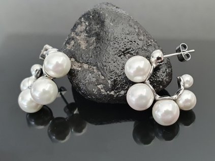 Ocelové náušnice ve stříbrném provedení s perličkami Dvojité Perličky Velikost perliček: 0,8 cm a 1,1 cmZapínání náušnic na puzetu